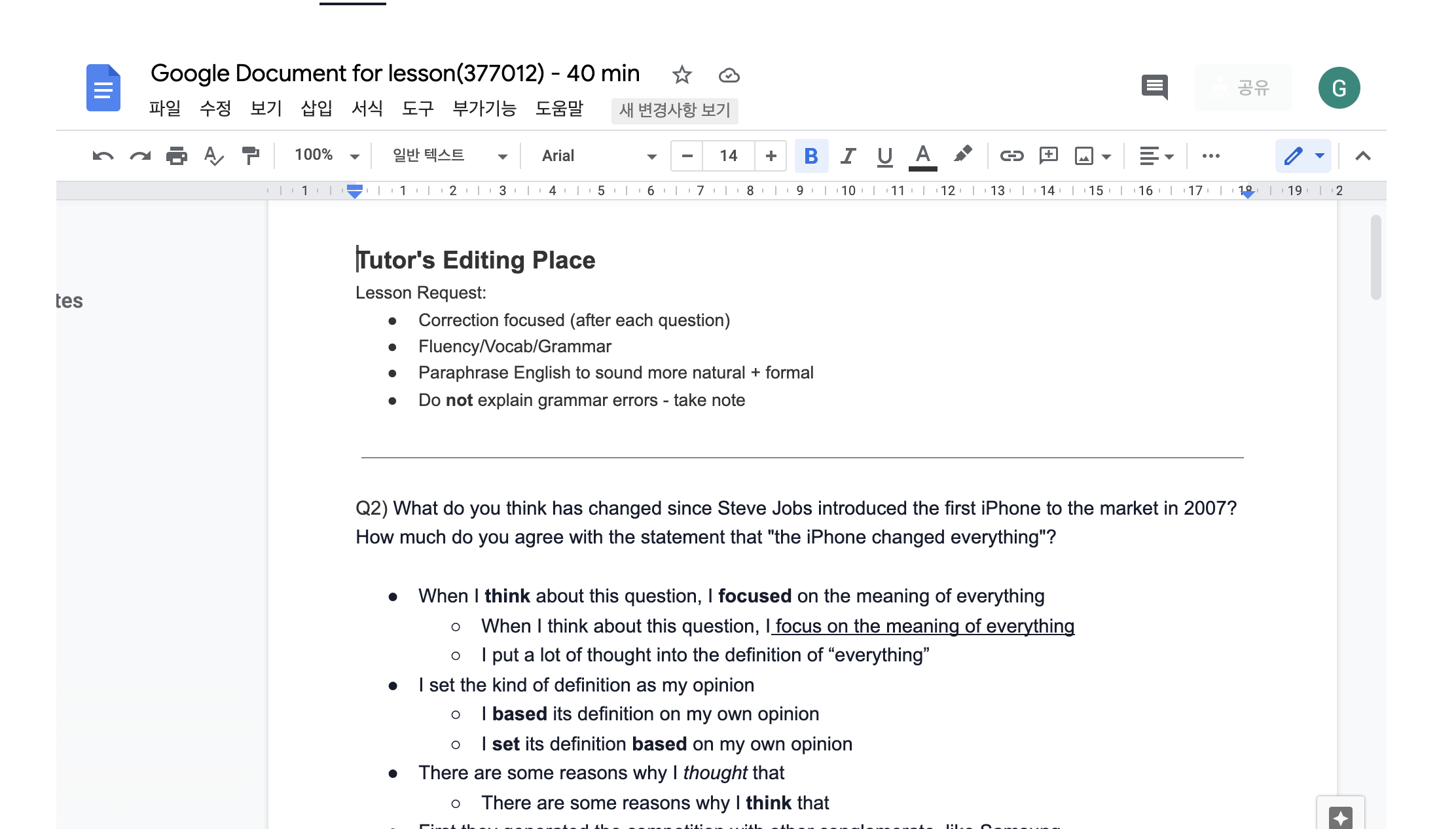 3) μμ λ°©μ μ€μ κ³Ό Google docsλ₯Ό ν΅ν μ€μκ° νΌλλ°±
