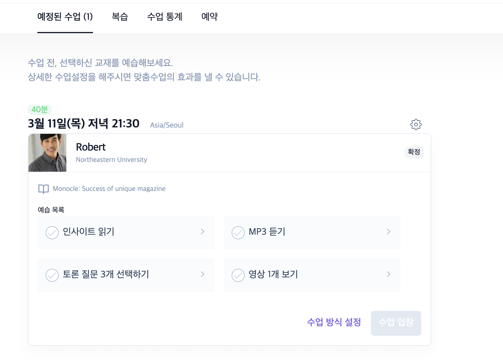 μΈμ¬μ΄νΈ μ½κ³ , ν λ‘ μ§λ¬Έ 3κ° μ€λΉνκ³ , mp3 λ£κ³ μμμ λ€μΌλ©΄ κ±°μ 30λΆμμ 1μκ°μ μ μ κ°λλ€ γ